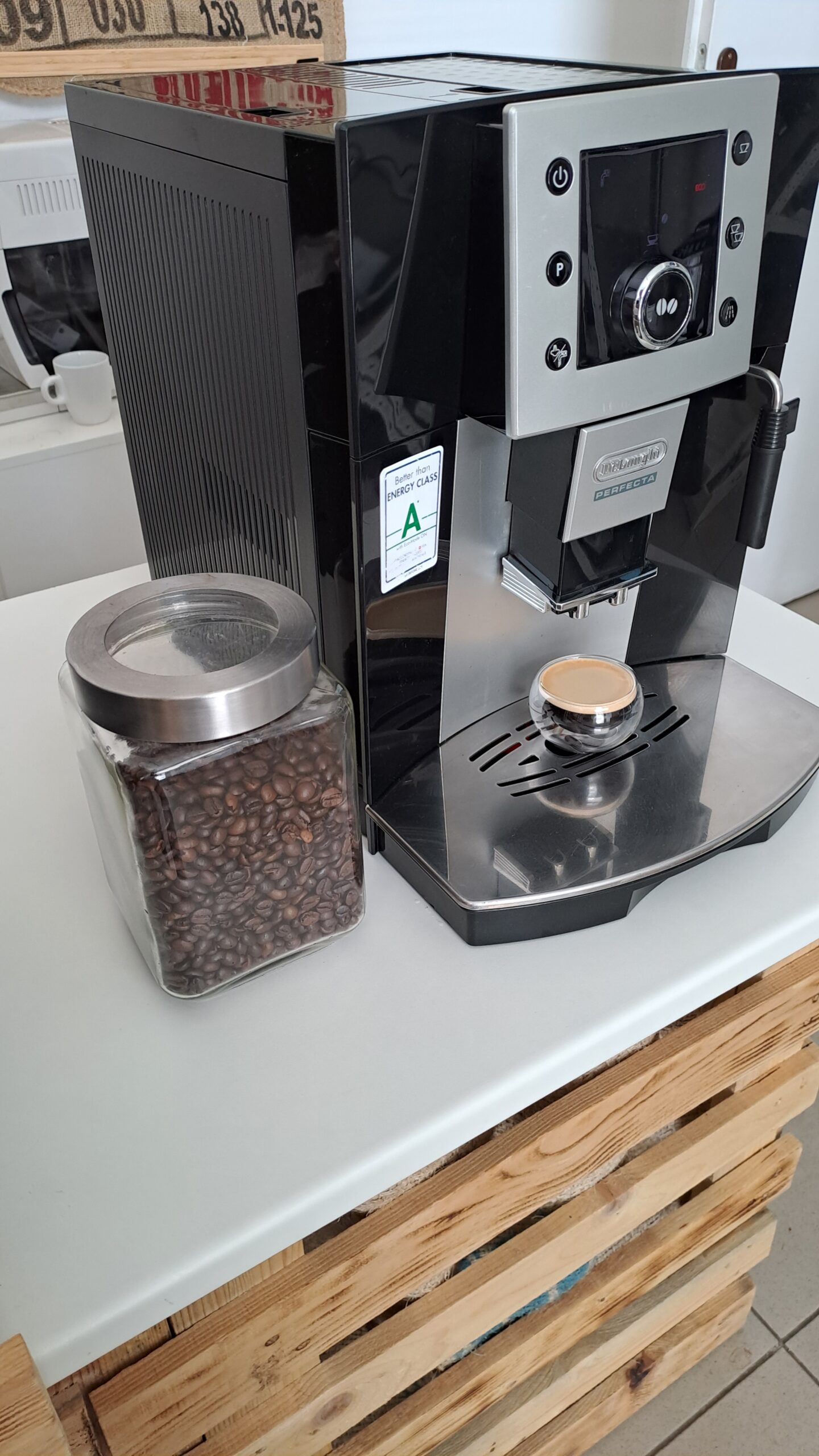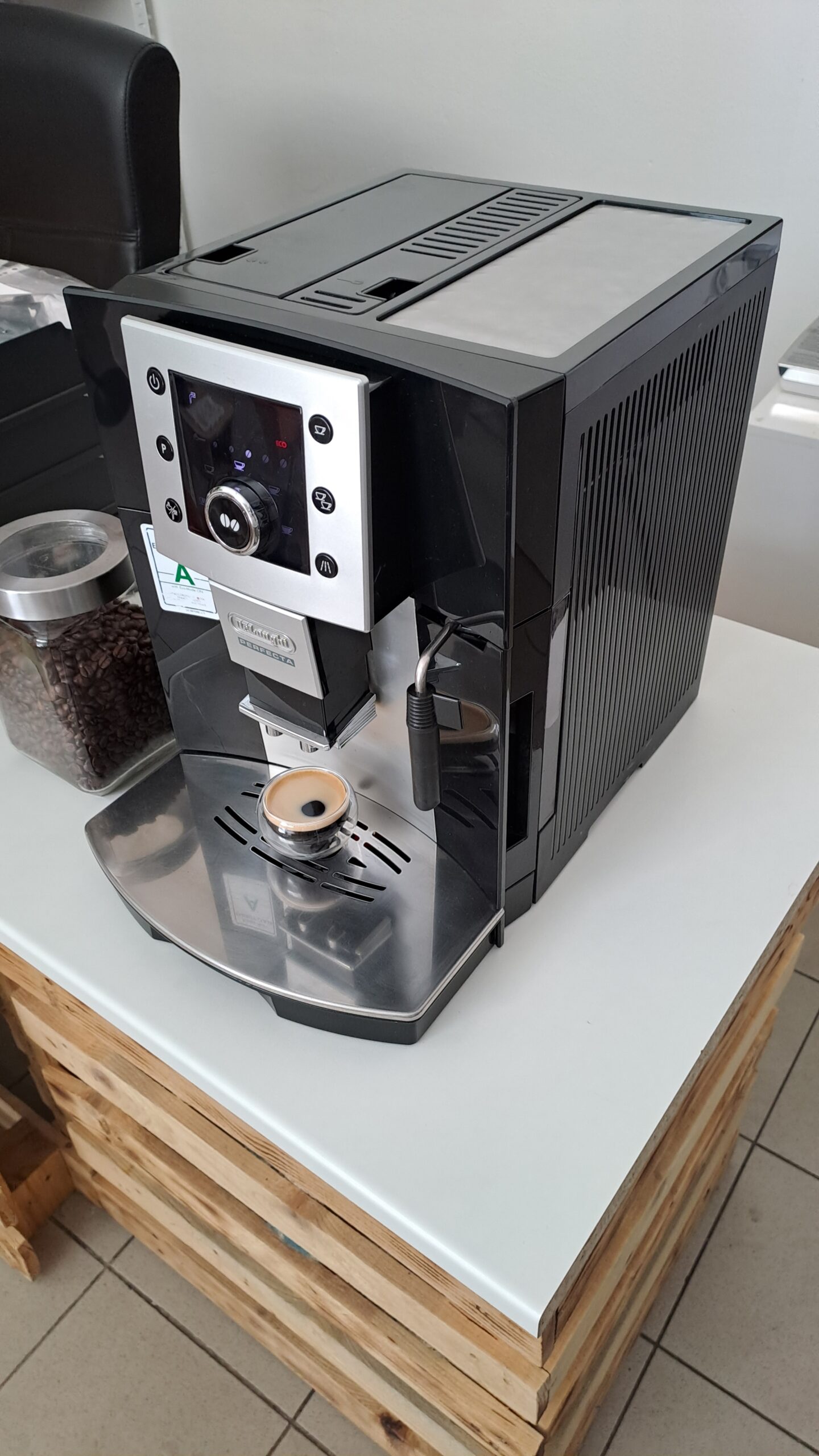 Automatický Kávovar Delonghi Perfecta na zrnkovou i mletou kávu s parní tryskou pro přípravu Cappuccina a horké vody na čaj.Po servisu a vyčištění.