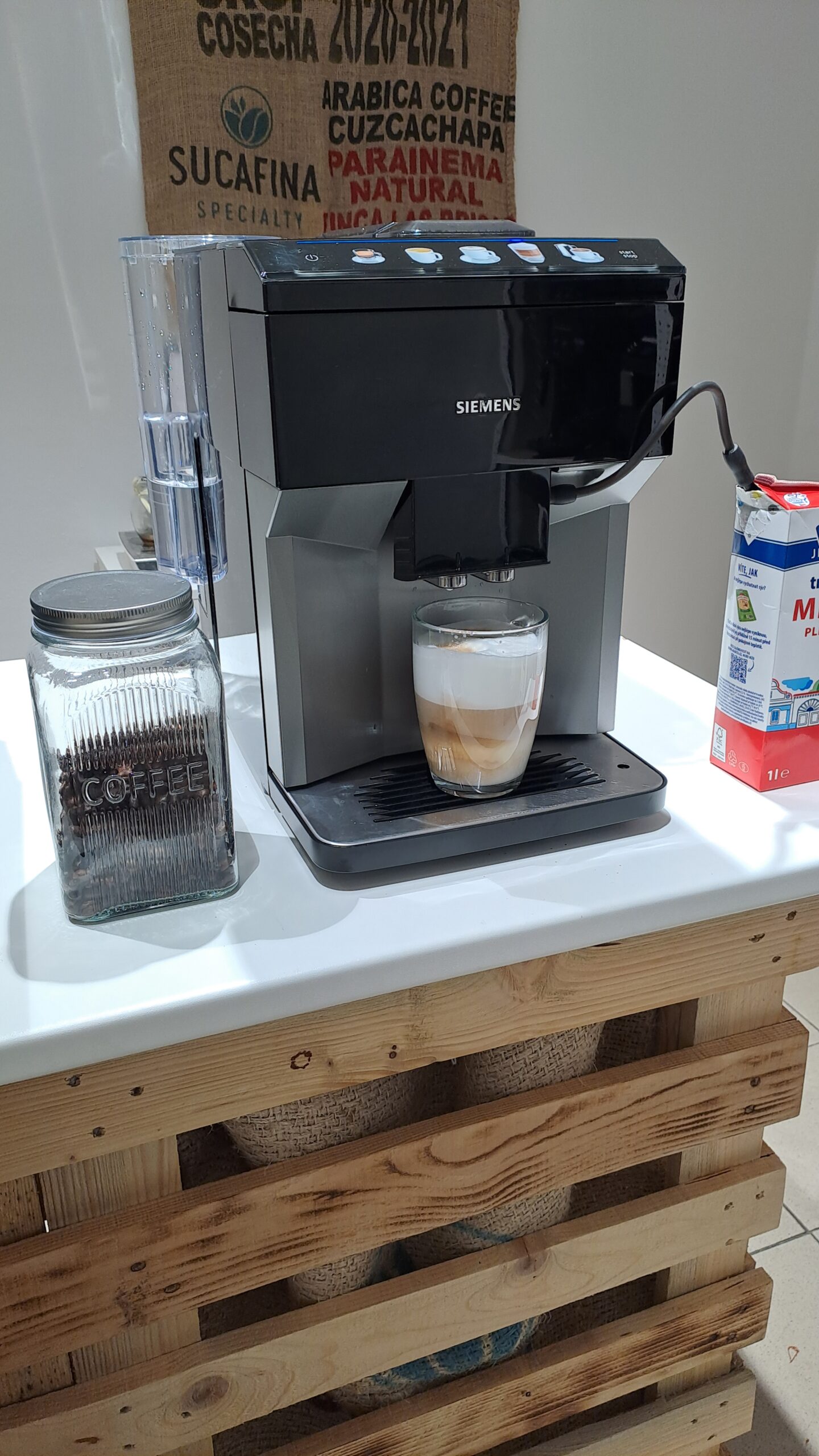 Dokonalá káva z kávovaru Siemens EQ500 přináší jedinečný chuťový požitek.Dokonalá souhra pro dokonalou chuť. S jedinečným systémem iAroma plně automatické espresso přístroje Siemens vždy vyrábějí nejlepší nápoje. Souhra mezi trvanlivým keramickým mlýnkem, inteligentním ohřívačem, inteligentní vodní pumpou a high-tech spařovací jednotkou vytváří technickou dokonalost od kávového zrna po pohár lahodné kávy Nadčasový design a intuitivní obsluha jsou předností kávovaru. Na dotykovém coffeeSelect displeji s programovatelným jazykem a podsvícenými tlačítky jednoduše zvolíte daný kávový nebo mléčný nápoj. . S funkcí oneTouch připravíte všechny kávové nápoje jedním tlačítkem a díky funkci OneTouch DoubleCup připravíte jedním stiskem současně také dva šálky kávy i mléčné speciality. Integrovaný mléčný systém je zakončený hadičkou, kterou vložíte třeba rovnou do krabice s mlékem.
